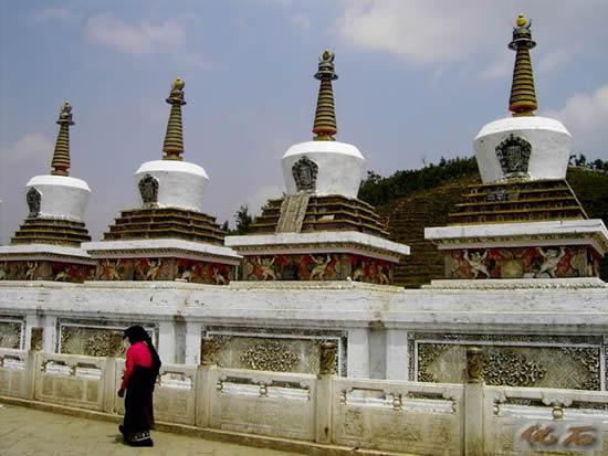 在去塔尔寺的路上,我看到一排排的长着银白色叶子的树,在风中飘舞。塔尔寺建在一座山上,我第一次见到这么大的寺庙群,金黄色的屋顶在阳光下闪闪发光,很壮观!门前有两座经幡的是佛学院,有一座的就是寺庙。寺庙的门槛要跨过去,不能踩,因为那是佛祖的肩膀。我顺时针转动经筒,转一遍就是念一遍经。