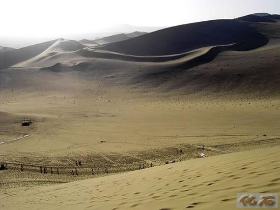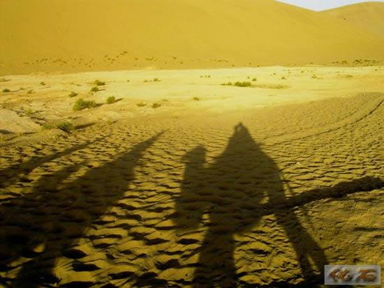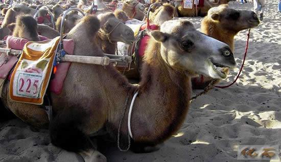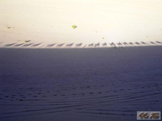 在敦煌鸣沙山,骆驼队浩浩荡荡,我和妈妈同骑一匹骆驼,慢悠悠地走着,摇来摇去,很好玩。停骆驼的地方有很多绿绿的骆驼屎,因为骆驼是吃草的动物,所以它的粪便是绿色的。