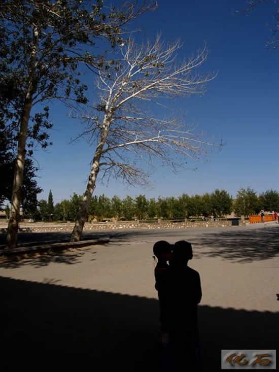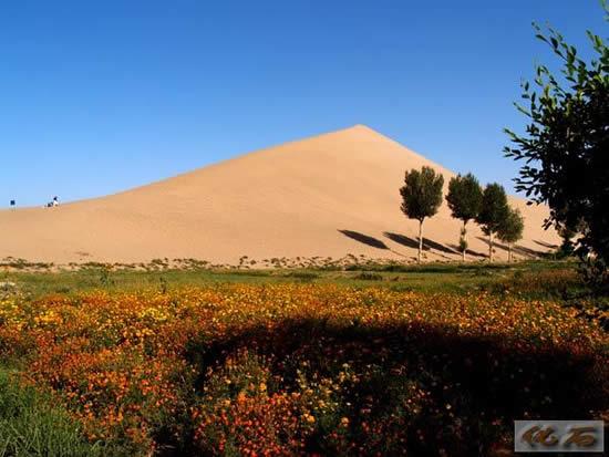 还玩了滑沙,坐沙地摩托车,非常刺激。绿洲里的月牙泉,弯弯的,像新月。