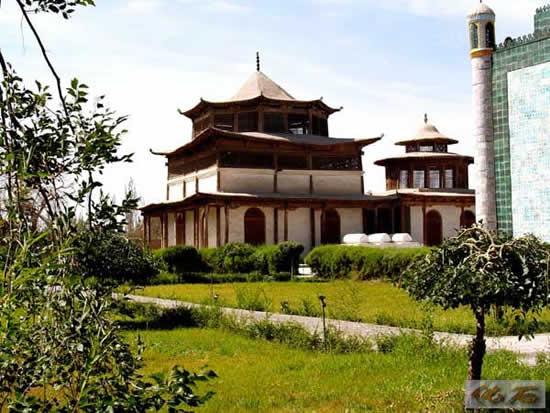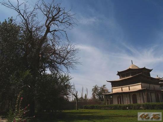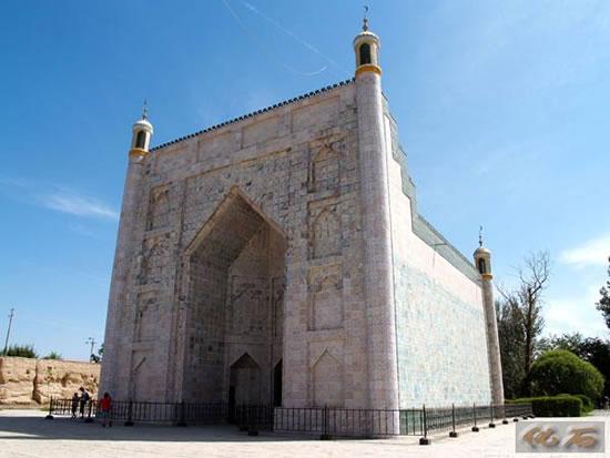 回王陵是伊斯兰教的陵墓建筑,屋顶是拱形的,像煮菜的锅,他们反对偶像崇拜,所以,从来不用人物画饰建筑,而是把花花草草变成美丽的图案,全方位地装饰整个建筑。