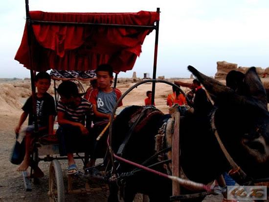 当年唐僧经过的火焰山是暗红色的。我们到达时正是傍晚,风吹在脸上烫烫的,导游说如果是中午,热得鞋底都会被烫坏。坐驴车观光高昌古城,好像时光倒流一样。古城的规模很大,房子都是用泥土建的,当地的土质坚硬又有粘性,所以经过一千五百年的风吹日嗮,还能保留下来。