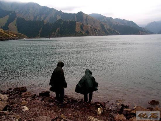 上午,去了王母娘娘的洗脚池——天池。风景很美,翠绿的高山云杉顶部发白,天下着雨,非常冷,我穿着雨衣到处逛。王母娘娘的定海神针原来是棵榆树,形状有点像广东的榕树,树干像铁杵。