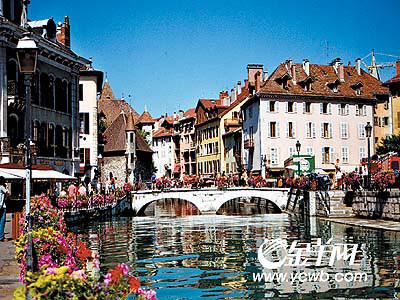 绵延15公里的安锡湖原来是一片冰河区,“来自天上”的雨水和阿尔卑斯山雪水使有3000年历史的湖水清澈得像婴儿的眼睛。安锡城位于湖的北面,在瑞士日内瓦南边不到五十公里,它是上·萨瓦省的省会。这里的湖光山色和可爱的老城区,就像是阿尔卑斯山里的小宝贝,人见人爱。徒步是游湖和游览城区的最好方式之一。湖上的爱之桥是欣赏水景的好地方,欧洲公园旁边有码头,可以租水上单车和划艇荡到湖中央,跳进淡蓝色的波光里和鱼一起游曳。或者随便挑一家湖畔的餐厅坐下,享受无边的佐餐窗景。在湖畔可以邂逅每个人都梦想过的那种欧洲风景:阳光、鲜花、大片草地、没成名的年轻艺术家支着画架,衣着优雅的老夫妇在喂天鹅,情侣在老树下亲热,肌肤发亮的小伙子带着小狗慢跑———安锡湖见证了许多故事的开始与结束。