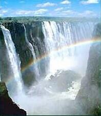 发源于安哥拉中东部与赞比亚西北部高地的赞比西河,先南流、后折向东北、再转向东南,经纳米比亚、博茨瓦纳、津巴布韦和莫桑比克,注入莫桑比克海峡,形成一个横卧在非洲大陆南部的大S形。就在南流与折向东北之际,当河流平缓前行之时,造化不知何故抽刀将河床拦腰斩断,在地面砍出一道长约两千米、宽深各约百米的峡谷,于是河水像骏马脱缰,狂奔跳涧,又恰似银河落地,飞流直下,在悬崖断壁间形成滔滔白浪,直泻谷底发出隆隆巨响,雾气冲天降下沙沙雨点,阳光折射飞架道道彩虹……这就是气势磅礴、绚丽多姿、妩媚多彩的维多利亚大瀑布(Victoria Falls)。