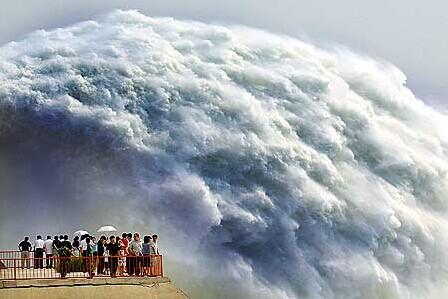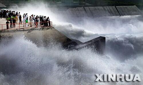 6月18日上午,在黄河小浪底大坝的观水台,观瀑的游客在感受“黄河之水天上来”的意境。当日,首届黄河小浪底观瀑节在小浪底大坝景区开幕。来自全国各地的万名游客亲眼目睹了黄河小浪底水库开闸时巨瀑飞泻、惊涛拍岸的壮观场面。黄河小浪底观瀑节将利用黄河小浪底水库“调水调沙”这一得天独厚的旅游资源,每年举办一次。