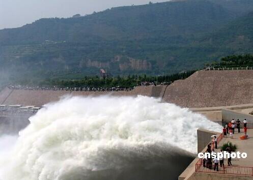 六月十八日上午九时许,随着黄河小浪底所有出水口全部开闸放水,二○○六年中国黄河小浪底“观瀑节”正式拉开帷幕。历年来规模最大的“人造洪峰”高二百多米、长五百多米。据悉,此次“观瀑节”将持续到七月份,小浪底游客因之翻倍增长。中新社发 胡珂 摄
