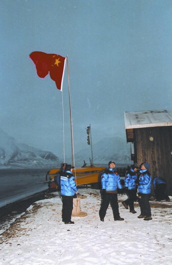 2001年10月,五星红旗在北极斯瓦尔巴群岛升起。张继民 摄