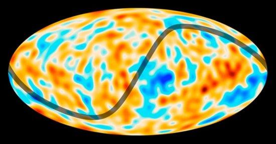 据国外媒体报道,欧洲空间局的普朗克探测器通过超高灵敏度的紧密仪器绘制出宇宙微波背景辐射的各向异性图,揭示出宇宙存在神秘的“时空涟漪”现象,科学家发现早期宇宙中存在不明特征的大尺度结构,如图中所示,在灰色线条右边出现了宇宙温度分布极为不均匀的现象,波动的尺度比左边更大,科学家猜测这些信息是否隐藏了多宇宙的事实?我们的宇宙是否在极度膨胀时期与相邻的宇宙发生了碰撞,而后留下了这些痕迹?
