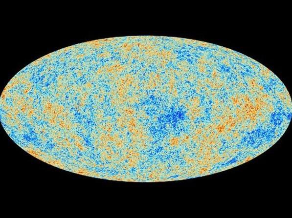 这幅图根据欧航局2009年发射的“普朗克”探测器在头15个半月内收集的数据绘制而成,比美国航天局此前发射的宇宙背景探索者(COBE)卫星和威尔金森微波各向异性探测器(WMAP)探测到的微波背景辐射更为精确,见证了宇宙诞生38万年后的情形。