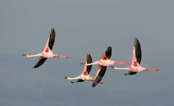Lesser Flamingoes in flight, Lake Nakuru, Kenya