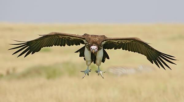 Nubian Vulture landing at kill, Maasai Mara, Kenya