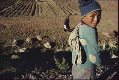 秘鲁,普洛,1981年,威廉·阿拉德,小男孩凄然泪下,因为他有六只羊被肇祸逃逸的出租车撞死了,这对自给自足的农家来说是很大的经济打击。照片刊出后,《国家地理》杂志收到7000美元读者捐款,算是弥补了小男孩的损失,也令阿拉德喜不自胜。