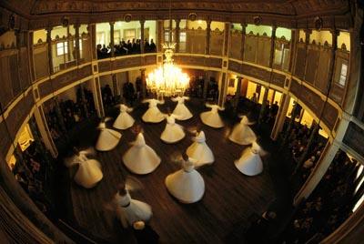 Suleyman 和他的家庭都是虔诚的穆斯林教徒,对伊斯兰苦修教士非常尊敬。他们在每个十二都会纪念他们死于1273年的先知Rumi。他们纪念的方法就是表演这种特殊的舞蹈,在跳的时候右手冲天堂,左手冲着地球。他们的旋转代表着所有的星星围绕着安拉运行。我几乎花了三个月来获得拍照的许可,我知道这是一幅奇观,我不想错过它。