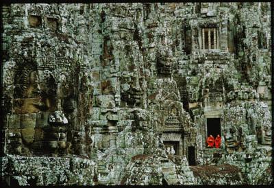 在古国吉蔑所建造的吴哥窟,2位身披袈裟的僧侣正蹲在中庭大殿的窗口中。长年来,加芮特已在亚洲跑过20趟摄影报道。