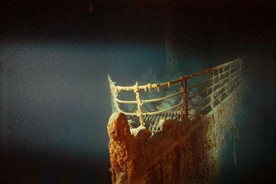 泰坦尼克号,浑身结霜似的铁锚,优雅依然的船首,正长眠在北大西洋4公里深处海底的泰坦尼克号。在1912年4月14日它误撞冰山之后,即以此处为墓。克里丝托夫很成功地将失踪已久的船骸拍成照片。