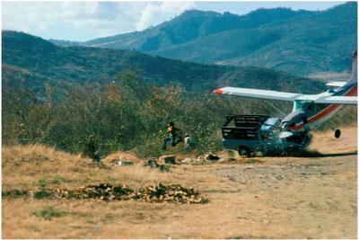地震过后,参与救援行动的飞机突遇强风而降落。没几分钟前麦登才搭机在同一条路上着陆,他隔着座机的窗户拍下这幅照片。