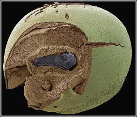 第2名“豌豆中的象鼻虫”;特写镜头类:第2名“豌豆中的象鼻虫”;作者:斯蒂芬·克施迈斯内尔(Stephen Gschmeissner)照片中,我们能够看到在一粒破损的豌豆里藏着一只豌豆象鼻虫。这种小虫是贮存物最为普遍的敌人之一。象鼻虫会在豆荚上产卵,它的幼虫会挖洞钻到豌豆里面,成虫会以豌豆花为食,还会钻到豌豆里过冬。
