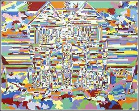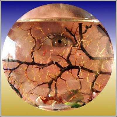 “偏头痛攻击”艺术科学汇合奖(Art meets Science Award):第1名“偏头痛攻击”(Migraine attack);作者:黛比·艾尔斯(Debbie Ayles)偏头痛攻击能够导致多种视觉征兆,如图象的变形、重影,或出现混乱跳动的颜色及闪亮的白色“星星”等。上面这幅图片表现的是在偏头痛发作中,人们看到的一个谷舱的景象。它的作者黛比·艾尔斯是一位艺术家,同时也是偏头痛的受害者。