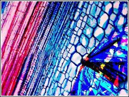 “植物茎干上的蝴蝶”年轻摄影师奖,16岁及以下:第1名“植物茎干上的蝴蝶”(Butterfly on a plant stem);作者:雷切尔·希尔库克(Rachel Shillcock)这张照片向人们展示了一株向日葵茎干上的多孔结构,其中包括红色的脉管区域和蓝色的支撑组织。这种系统的规律性和旁边一只蝴蝶的大体轮廓形成了对比。