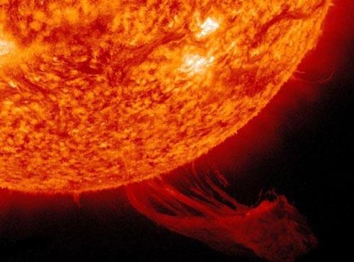 太阳表面产生非常强烈的太阳活动—日珥,像跳动着的鲜红的火舌。