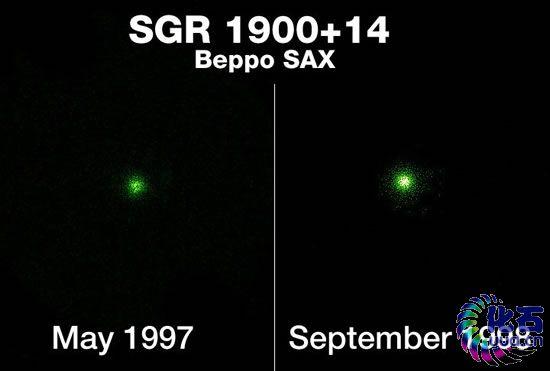 磁星是旋转的中子星,其磁场至少比“正常”射电脉冲星的磁场强一个数量级。目前已知的磁星只有大约12颗,而它们的演化历史尚未充分确定。间接证据将它们与一些非常巨大的恒星联系了起来,说明后者可能是其前身,而现在,在磁星SGR 1900+14(一个软伽马射线复发源)周围一个红外环或壳的发现证实了这种联系。“斯皮策”天文望远镜的观测结果与在磁星环境中存在一个无尘埃的空腔的判断相一致(这个空腔可能是由1998年8月由该发射源所发射出的巨大耀斑产生的),这表明它很可能与一个由巨大恒星组成的星团有关。
