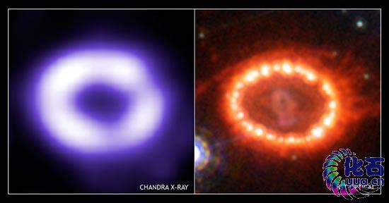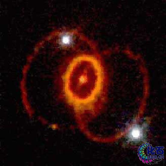 非同寻常的超新星1987A的一个三维计算机模型模拟了研究人员认为发生在上万年前的两个恒星的碰撞,并解释了这个三环超新星的许多特征。Thomas Morris和Philipp Podsiadlowski创造了一个两个恒星合并的流体动力学模型,对角动量以及来自两个恒星的气体加积的具体模拟表明发生了两次爆炸:一次爆炸形成了滴漏形状的物质摒弃,第二次爆炸产生了较小的气体膨胀。这些爆炸能解释围绕爆发恒星的三个气体环,其中两个环来自喷发的滴漏,另一个环来自第二次爆炸。这个1987年发现的超新星是自从开普勒1604年观察到超新星后,用肉眼能看到的第一个,今年2月是它发现的20周年。