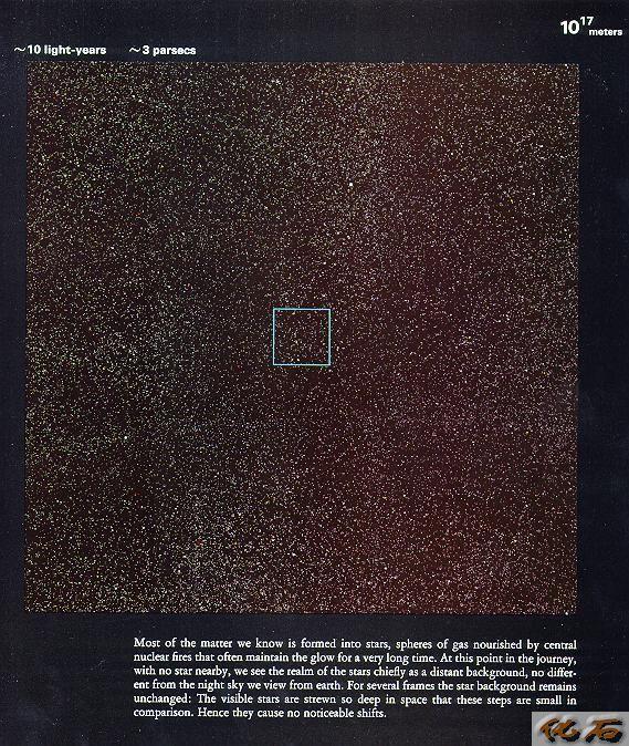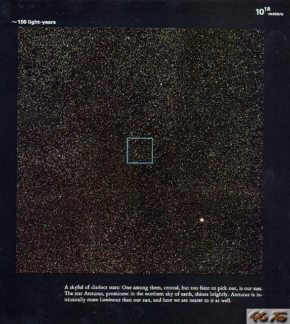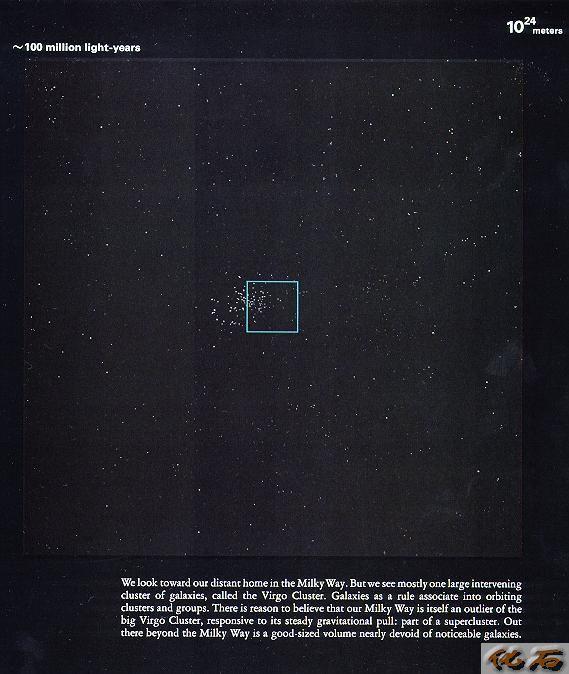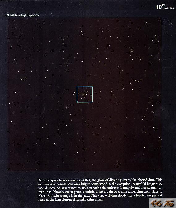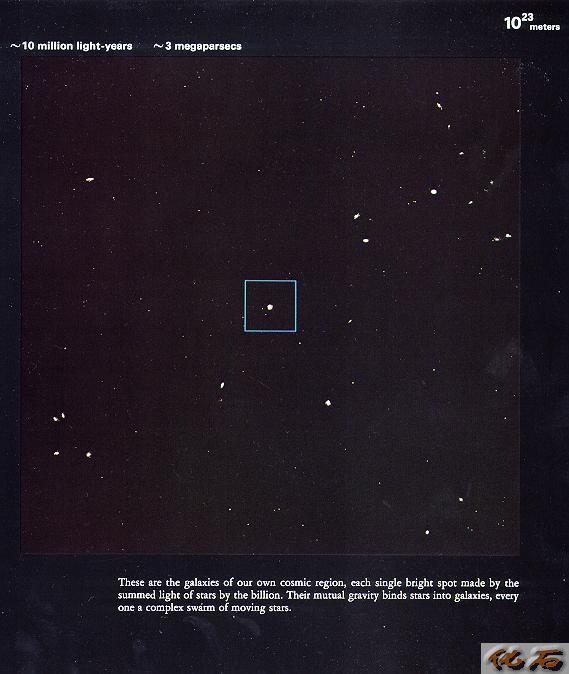 现在我们把视野缩小10倍,宇宙看起来还是空空如也,“星”光点点。可是,那些点点斑斑的真的是星么?