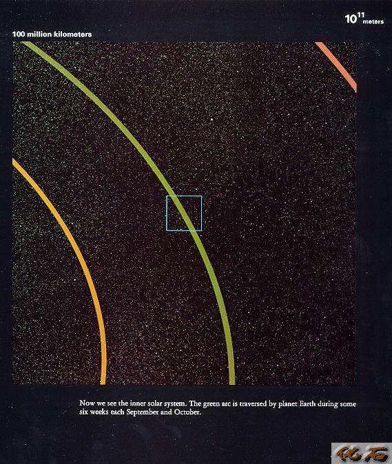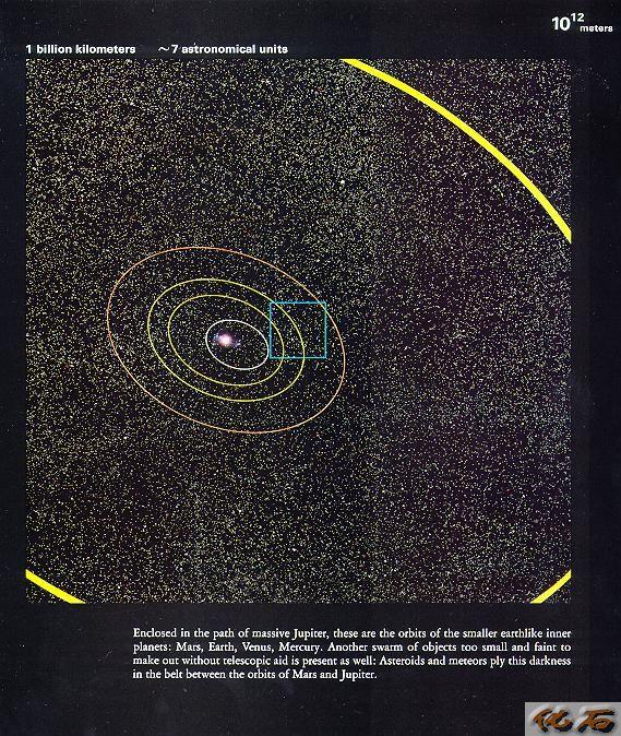 数数看,下图里被蓝框子圈上的是谁的轨道?水、金、地……原来是地球的轨道呀!