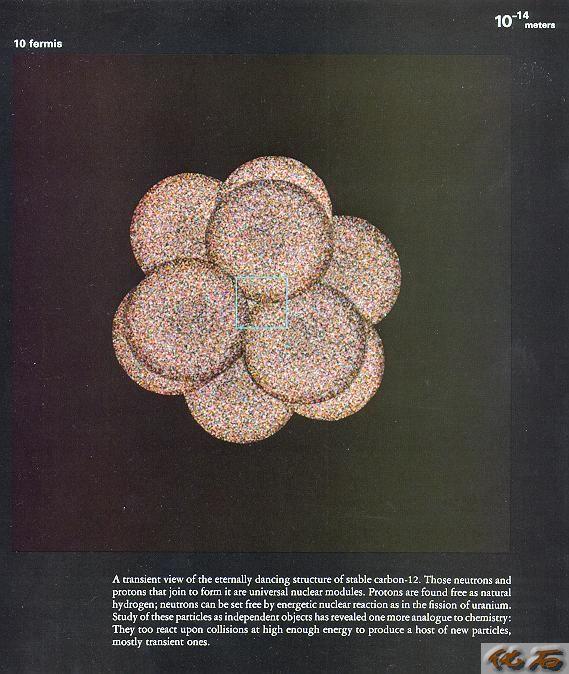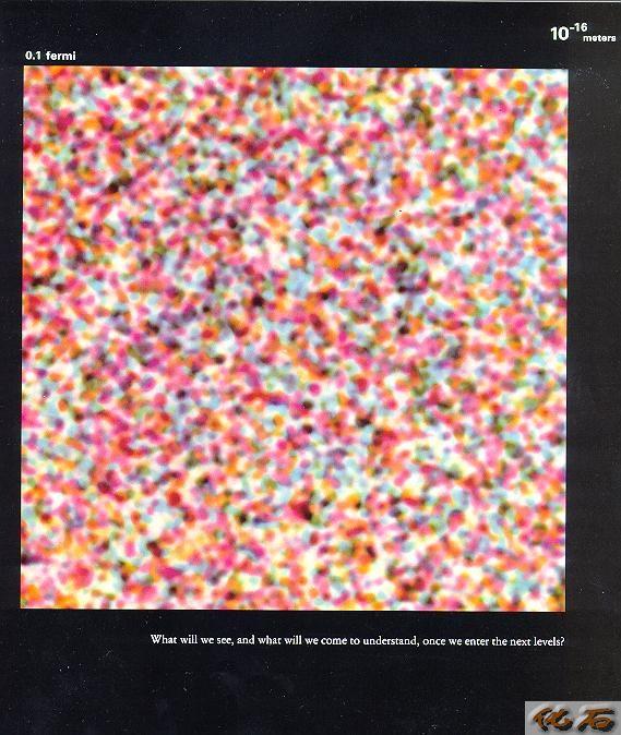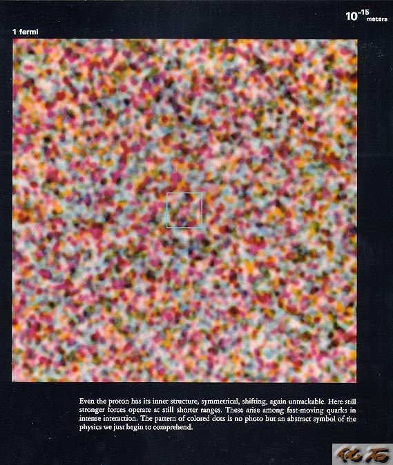 质子(也可能是中子)的细部,乱七八糟一大片。未知的结构,未知的领域,那里属于上帝。