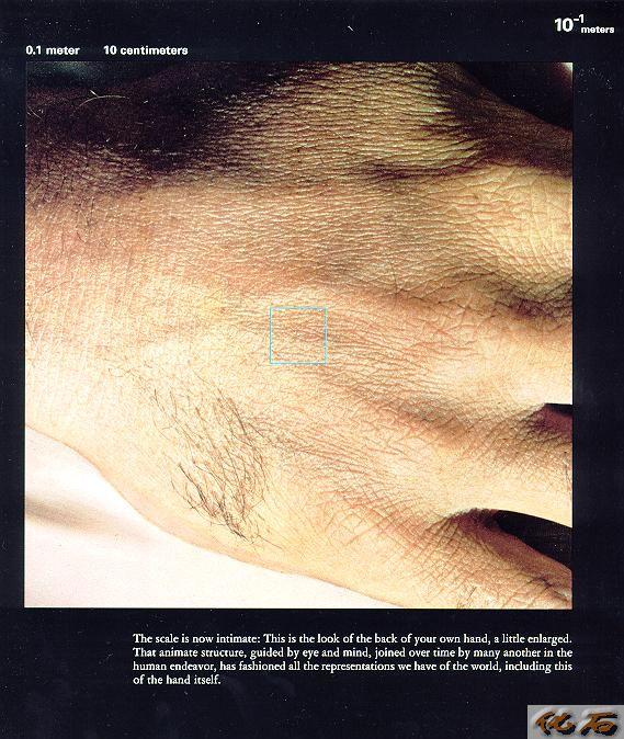 这是他手上的皱纹细部。兴许你放大了还没他细皮嫩肉呢。做好准备,我们即将进入另一个陌生的领域——微观世界。