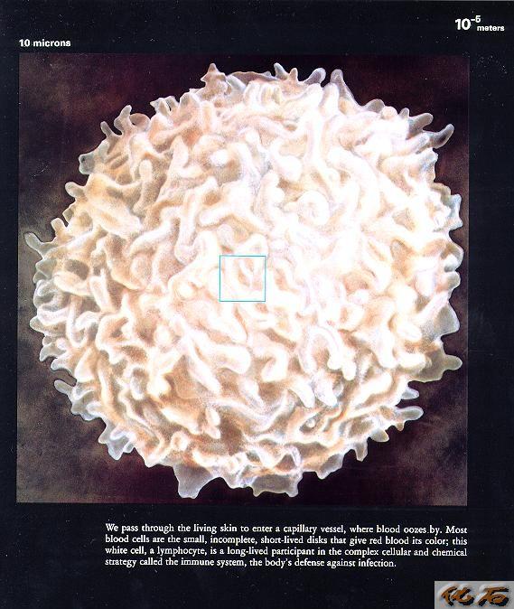 一个细胞的数量级就是10微米,当然这只是一般来说。插句嘴,世界上最大的细胞是鸵鸟蛋,它是一个单独的卵细胞,数量级是分米级的,厉害吧。