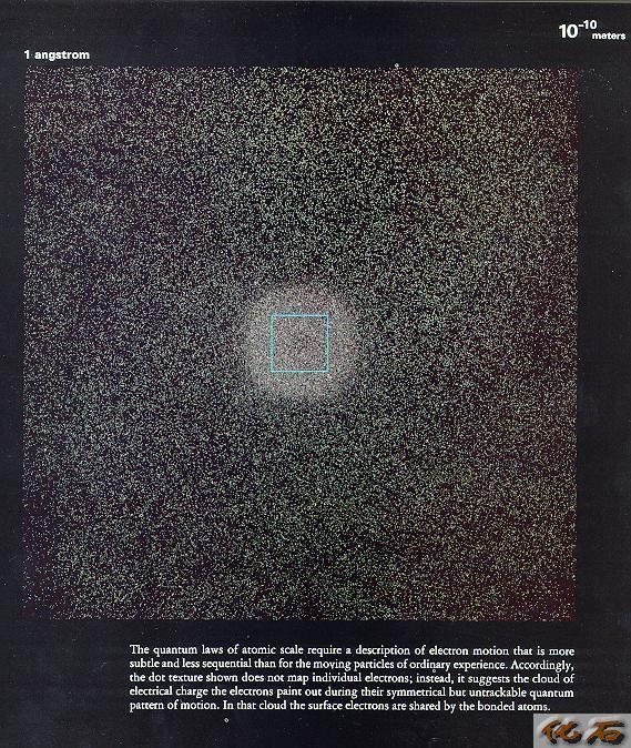 原子核外围的浓密电子云。仿佛又回到了浩瀚无边的宇宙。这样来看每个原子都像是个小宇宙,我们的世界就这样的周而复始着,不寒而栗着……