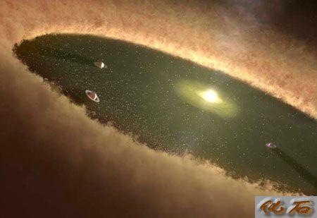 图为由美国宇航局斯皮策科研中心提供的类太阳系恒星-行星系统发育的早期状态图。