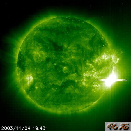 美国国家海洋和大气局太空环境中心将2003年11月4日爆发的太阳耀斑确定为X28级,是人类有史以来所记录的最大的太阳耀斑。
