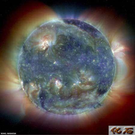 暴怒的太阳释放出强力耀斑图片拍摄于2001年4月,时值太阳以11年为周期的活跃期颠峰。