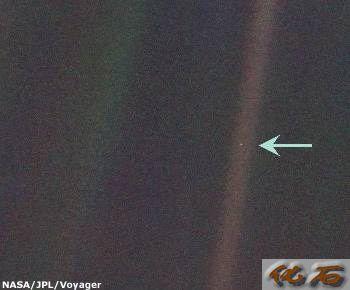 从摄影水平上来说,这张照片实在是很糟糕,不过它却是从太空中拍摄的最著名的照片之一,图片中间的淡蓝色的圆点就是航行者1号空间探测器视野中的地球,1991年从40亿英里之外拍摄。