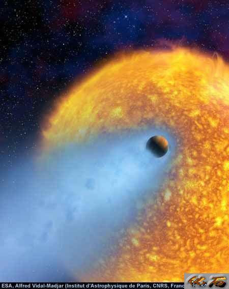 这张图片可以帮助我们更形象地看到一颗行星以如此近的距离围绕一颗恒星运转,恒星外层的大气被行星冲击得四处飞扬。