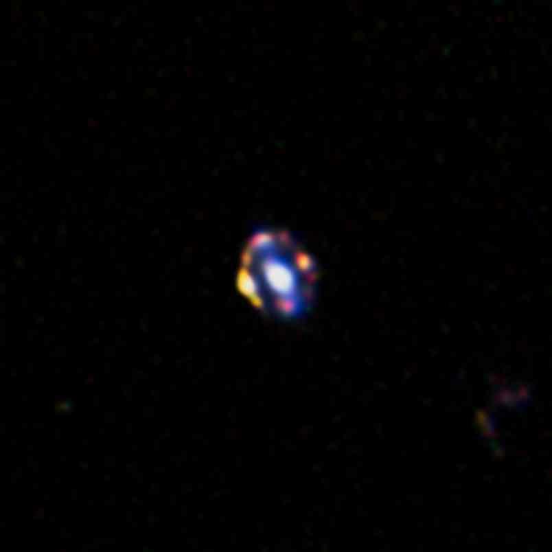 通过对比哈勃太空望远镜拍摄的其它图片,并移除透镜星系周围恒星的薄雾,研究人员发现了一个近乎完美的爱因斯坦环,据凡·德·威尔透露称。天文学家能够测量扭曲的光线以直接计算透镜星系的质量。此外,这项发现还发掘了早期宇宙的新神秘之谜。