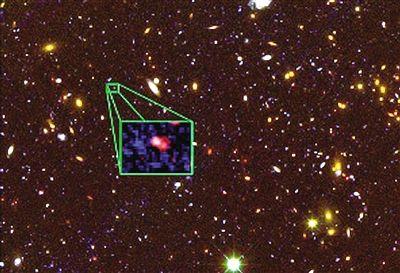来自z8_GND_5296的光有个破纪录的红移并在图片中呈红色。
