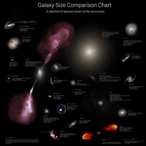 天体物理学家莱斯-泰勒制作的星系大小比较图