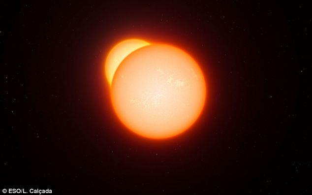 这副艺术家印象图展示了一个重叠的双星系统。通过研究光亮度的变化,以及该系统的其它特性,天文学家能够非常精确的测量到重叠双星系统的距离。对罕见冷却的重叠双星系统的一系列长期观测使得科学家能够对大麦哲伦云的距离进行目前为止最精确的测定。