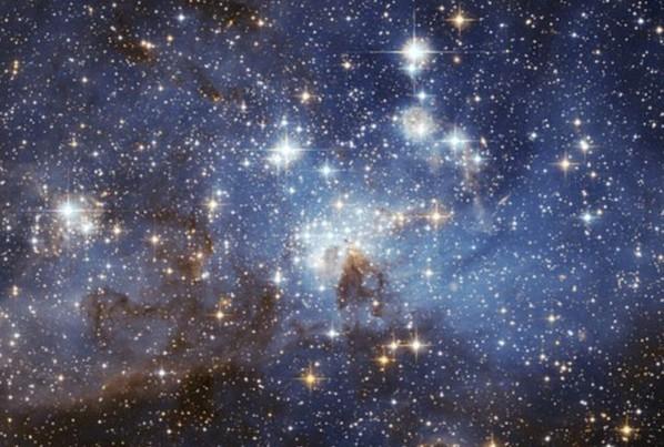 大麦哲伦云里大量的气体云缓慢坍塌形成新的恒星,这些新恒星以明亮的颜色照亮着星系,这从哈勃太空望远镜拍摄的图片中清晰可见。