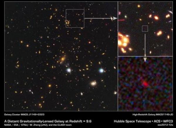 这支天文学家小组的首席为约翰·霍普金斯大学的科学家郑伟(Wei Zheng,音译),发现宇宙诞生后仅五亿年的早期星系,这个年轻星系发出的光线被轨道望远镜捕捉到了。科学家认为MACS 1149-JD星系存在的宇宙时期是非常值得关注的,宇宙经历了一段被称为“黑暗时期”的演化阶段,在此之后宇宙诞生了第一批星系并出现了可见的星光。因此发现早期宇宙中的MACS 1149-JD星系打开了探索最深、最遥远宇宙历史的一个窗口。