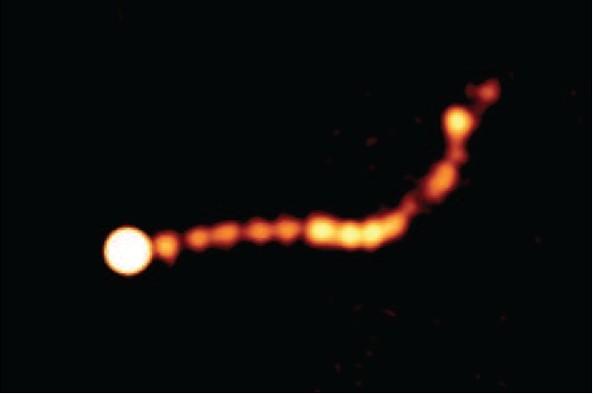 科学家在对一个遥远星系的观测中,发现其以接近光速的速度喷射出宇宙物质,并形成了类似地球上发动机引擎喷射的图案。这一星系喷流长度超过2百万光年,比我们的银河系还要大至少20倍。