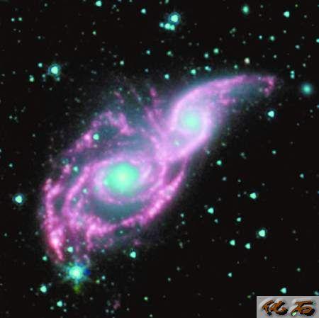时报综合报道 一直以来,人类都为银河系的浩瀚无际所折服,但看过27日NASA(美国航天航空局)公布的一张银河系照片后会发现,她的壮丽同样让人慨叹。从这张由NASA斯必泽空间望远镜拍摄的照片上看,两个银河系星系排列成两个动感的光圈,看上去就像是化装舞会上的妖艳面具。