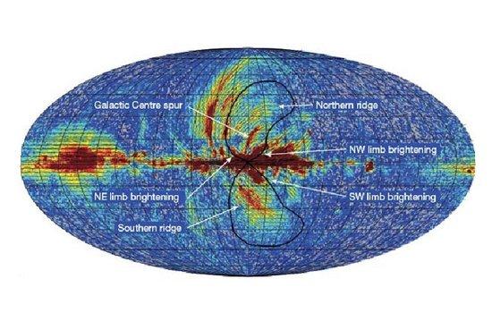 此前,科学家们怀疑银河系中央平面延伸出的伽马射线“气泡”可能由暗物质引发,来自费米伽马射线探测器的数据显示,此类射电释放具有强度大、极化等特点。来自哈佛-史密森尼天体物理学中心(CfA)的研究人员认为该现象十分罕见,在强磁场的作用下射电波产生了极化现象,类似的情况可以在偏振眼镜观察可见光时发现。因此,极化的射电释放就是强大磁场存在的证据,其中还伴随着伽马射线“泡沫”。