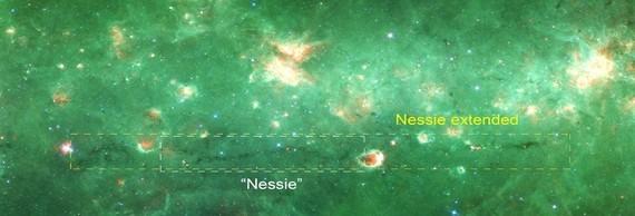 这个在2010年斯皮策研究中绰号为尼斯的骨骼其实比预想的要长得多,大约延伸了300光年(但宽度只有1到2光年)。以上图片只显示了该骨骼的一部分。尼斯全景图见图2。