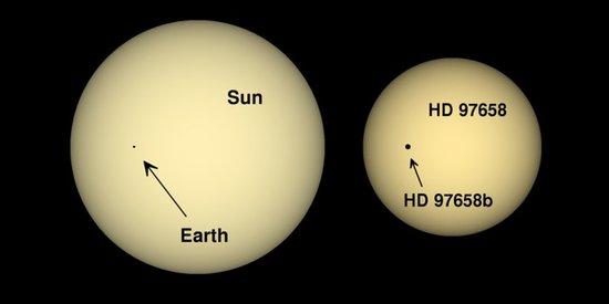 HD 97658b行星凌日时的情景,科学家对比了地球与HD 97658恒星系统的整体情况