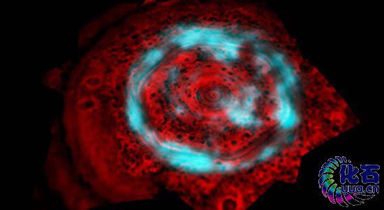 行星极光一般是在一个行星的电离层和磁层之间流动的电流产生的,这种电流将带电高能粒子加速,后者随后撞击上层大气(而发光)。最近关于土星极光的模型预测,土星的极光主椭圆区只有微弱的辐射。现在,Stallard等人介绍了卡西尼探测器从一个新角度拍摄的图片,它们首次让我们从土星上夜晚的一边看到了极光。这些图片显示,主椭圆区的辐射既有朝两极方向的,也有朝赤道方向的。极向辐射随时间发生变化,似乎与强磁层压缩无关。该极光对土星来说似乎是独特的,无法用关于土星磁层的当前模型来解释。