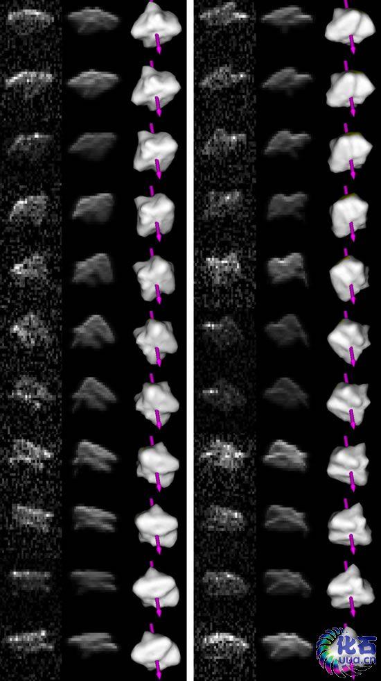 两项研究证实了太阳光能通过所谓的"YORP效应"影响小小行星的自转。研究人员对此曾做出预测,但在这之前没有观察到过该现象。YORP(四个人名Yarkovsky-O'Keefe-Radzievskii-Paddack的缩写)效应可能能帮助解释小行星行为的几个令人不解的方面,比如为什么某些小行星分裂成更小的碎片。了解这个也许能帮助降低近地球小行星撞击的危险,因为我们需要知道小行星怎样自转才能破碎,或如何使将撞击地球的小行星改变轨道。YORP效应是这样产生的:从小行星表面反射和重新辐射的暖太阳光给其施加一个力矩,对小行星的自转轴产生影响,或加快或减慢其自转速度。两篇由欧洲和美国作者撰写的新研究报告分析了近地小行星54509 (2000 PH5)。Stephen C. Lowry和同事监测了小行星反射的光,显示了小行星的自转如何变慢。Patrick Taylor和同事用雷达观察测绘了小行星的形状,揭示其自转的变慢能用YORP 效应准确地预测。